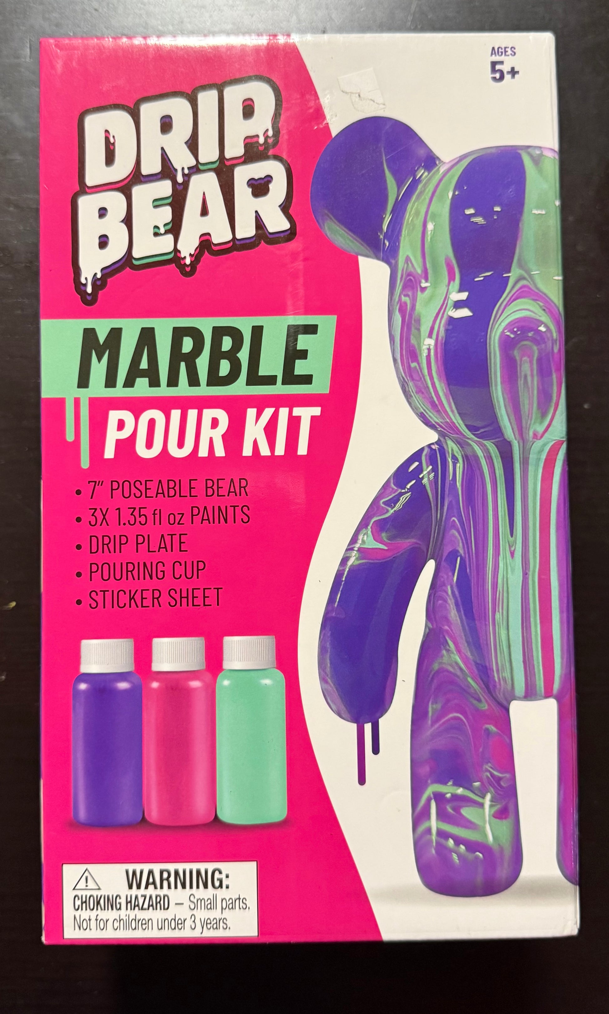 7” Posable Acrylic Drip Bear. Full Marble Paint Kit in Purple, Pink and Green.