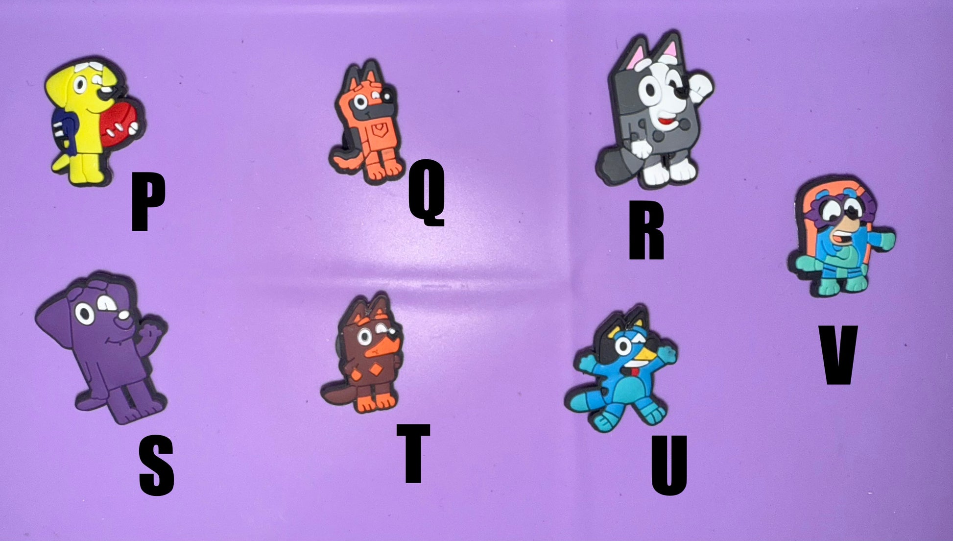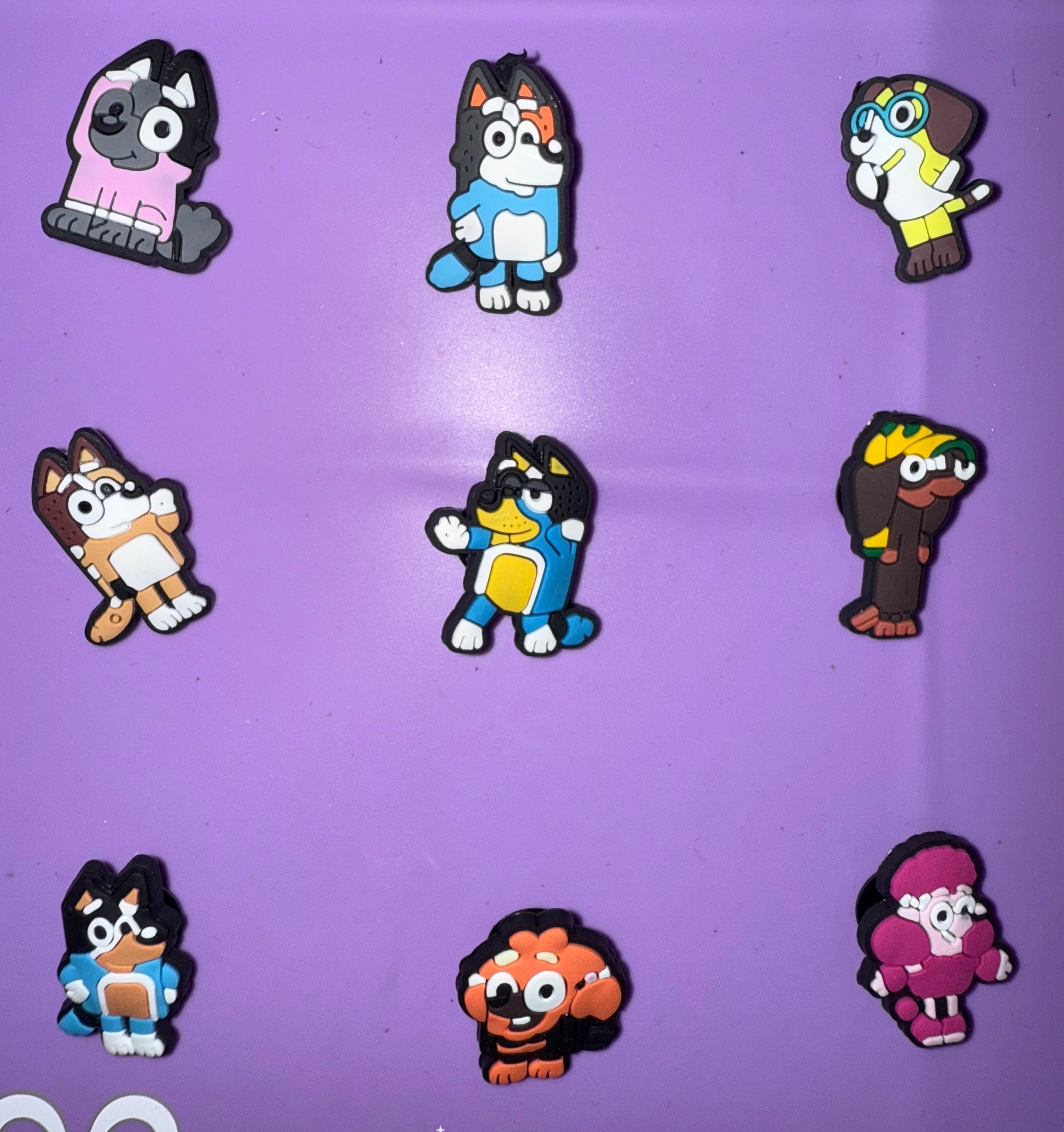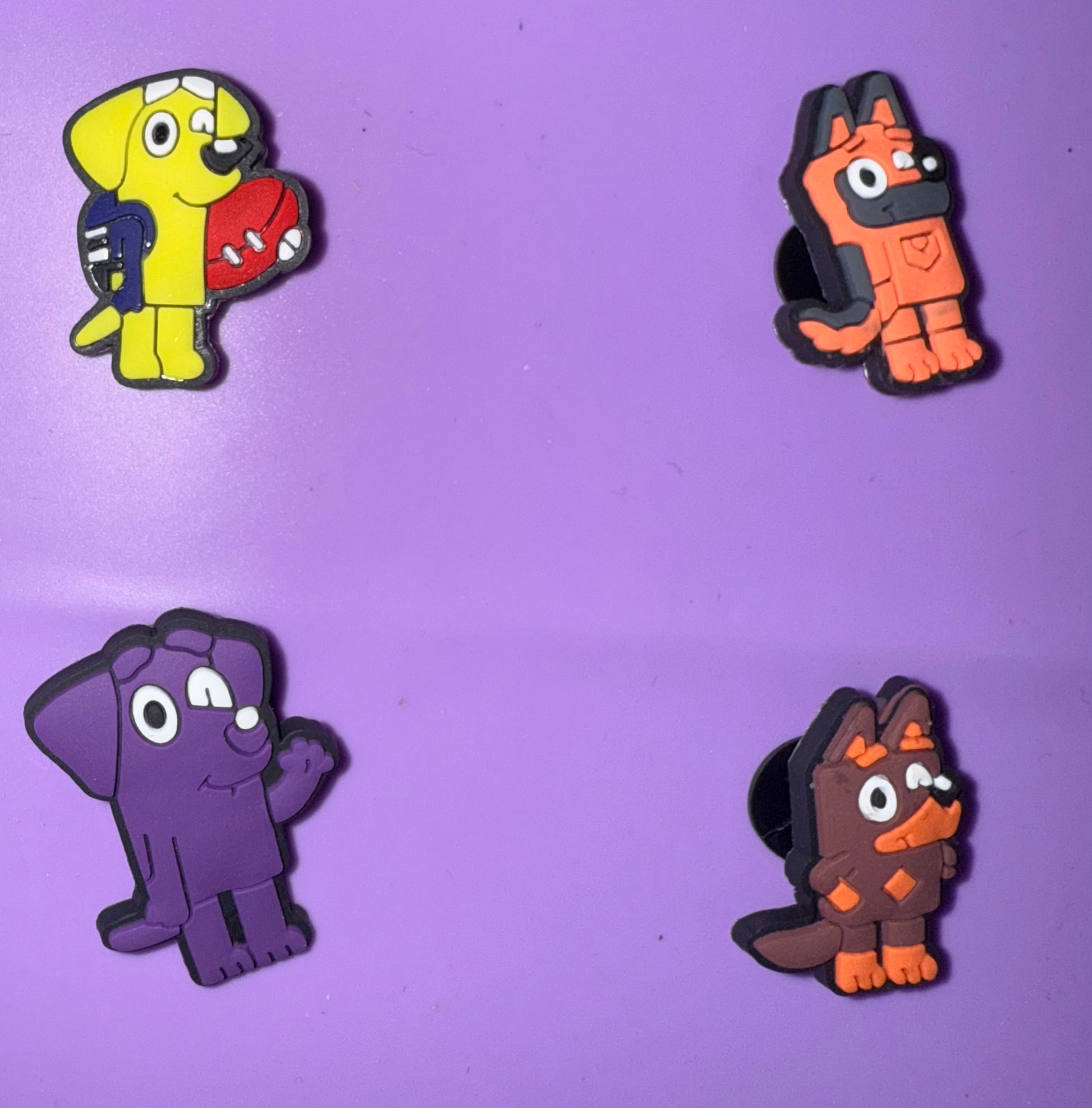 Kids Blue Dog Character Croc Charms. Agatha, Bluey, Bandit, Bentley, Bingo and more. Sold Individually or in a full set of 4. Add style to your Crocs. Excellent as Gifts!