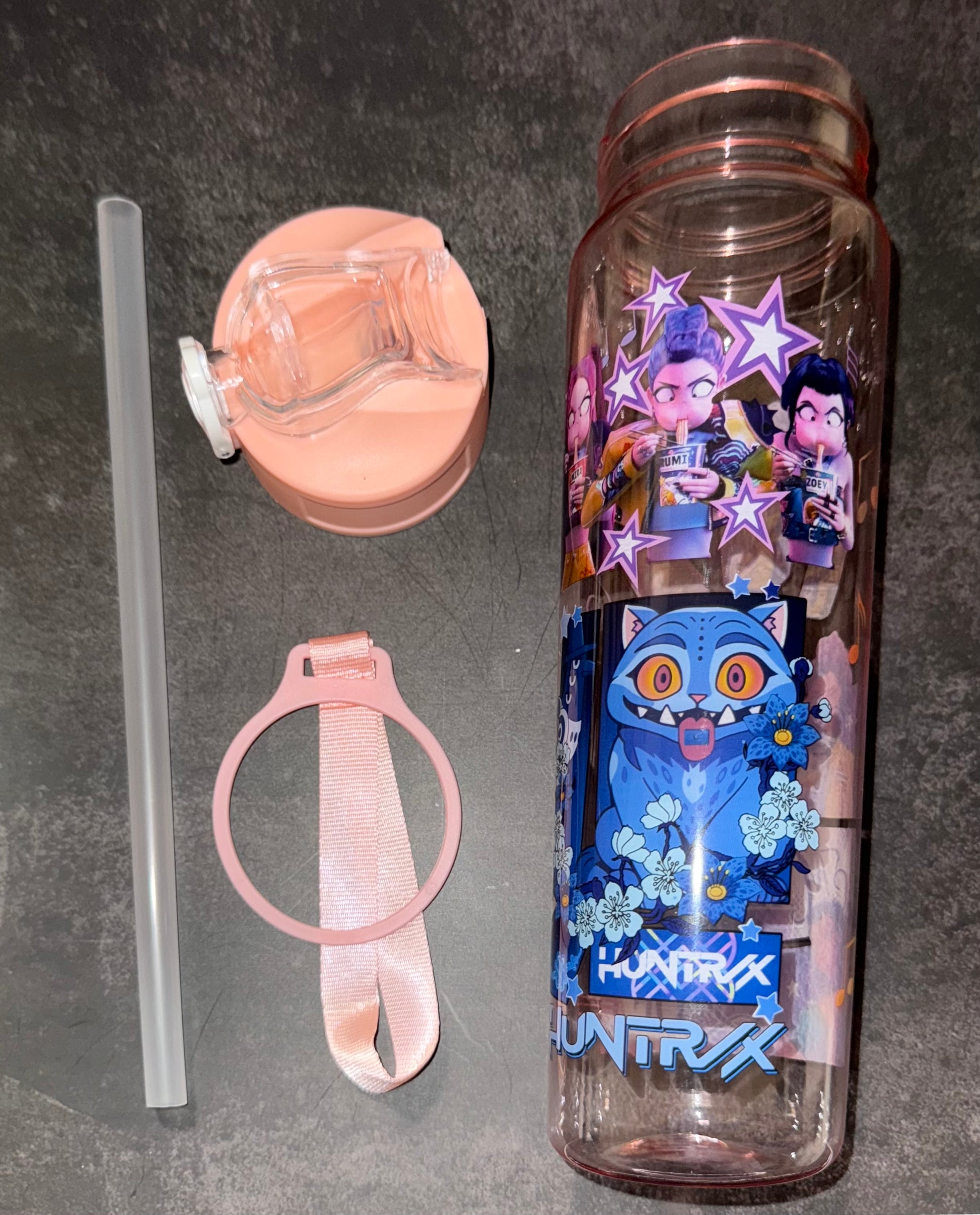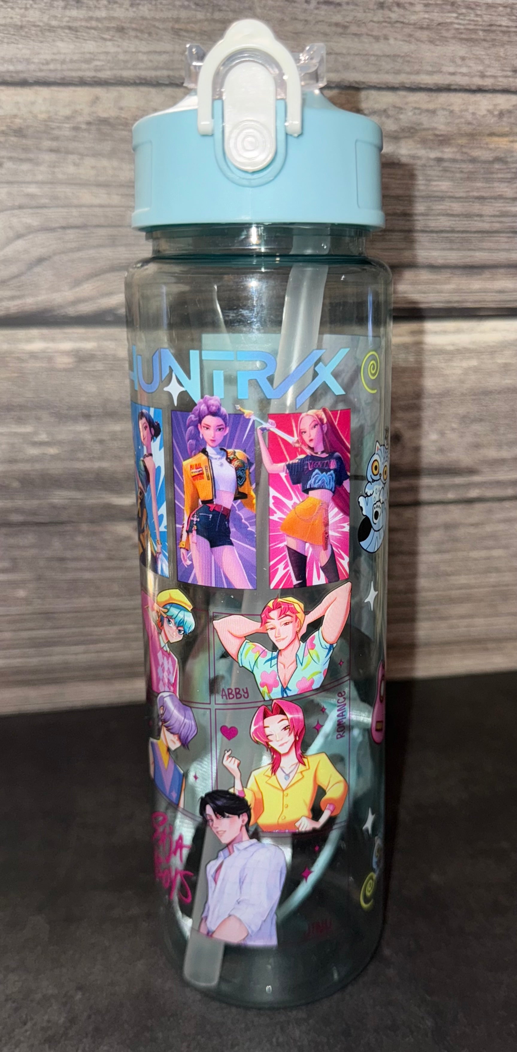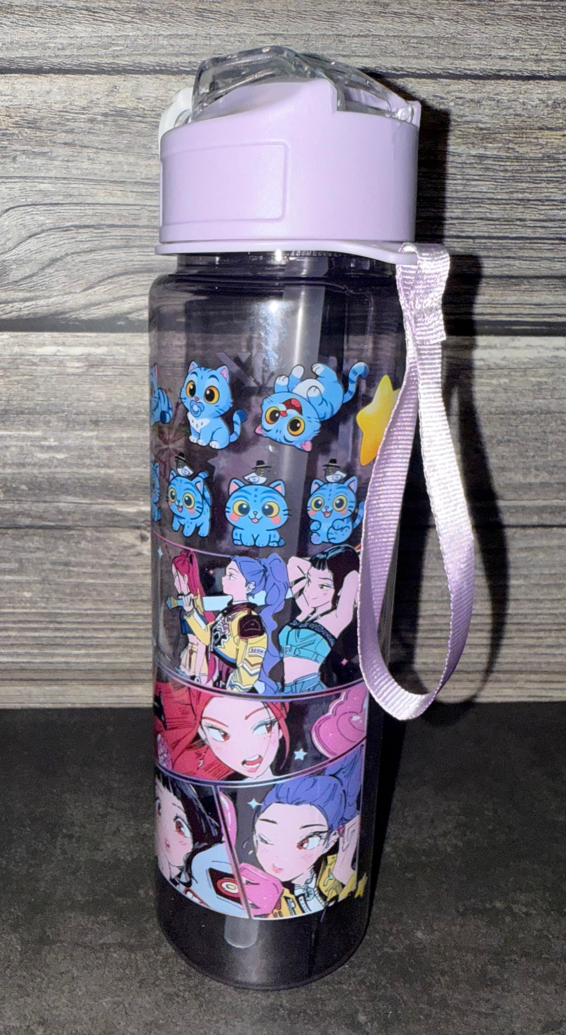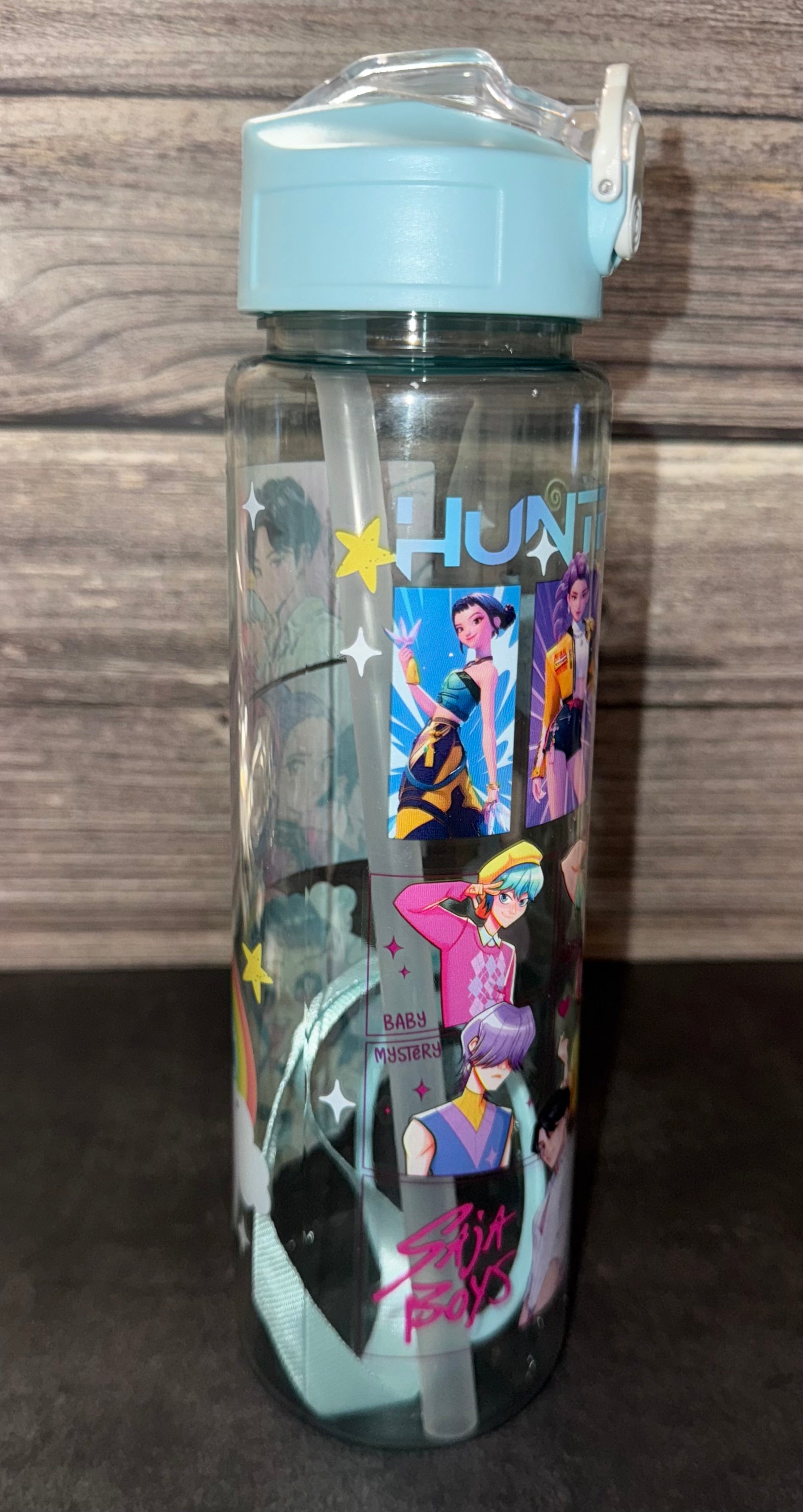 KPOP Demon Hunter Character 700ml Plastic Water Bottle with pop up straw and wrist holder. Comes in Blue, Light Purple, Peach or Mint Green.