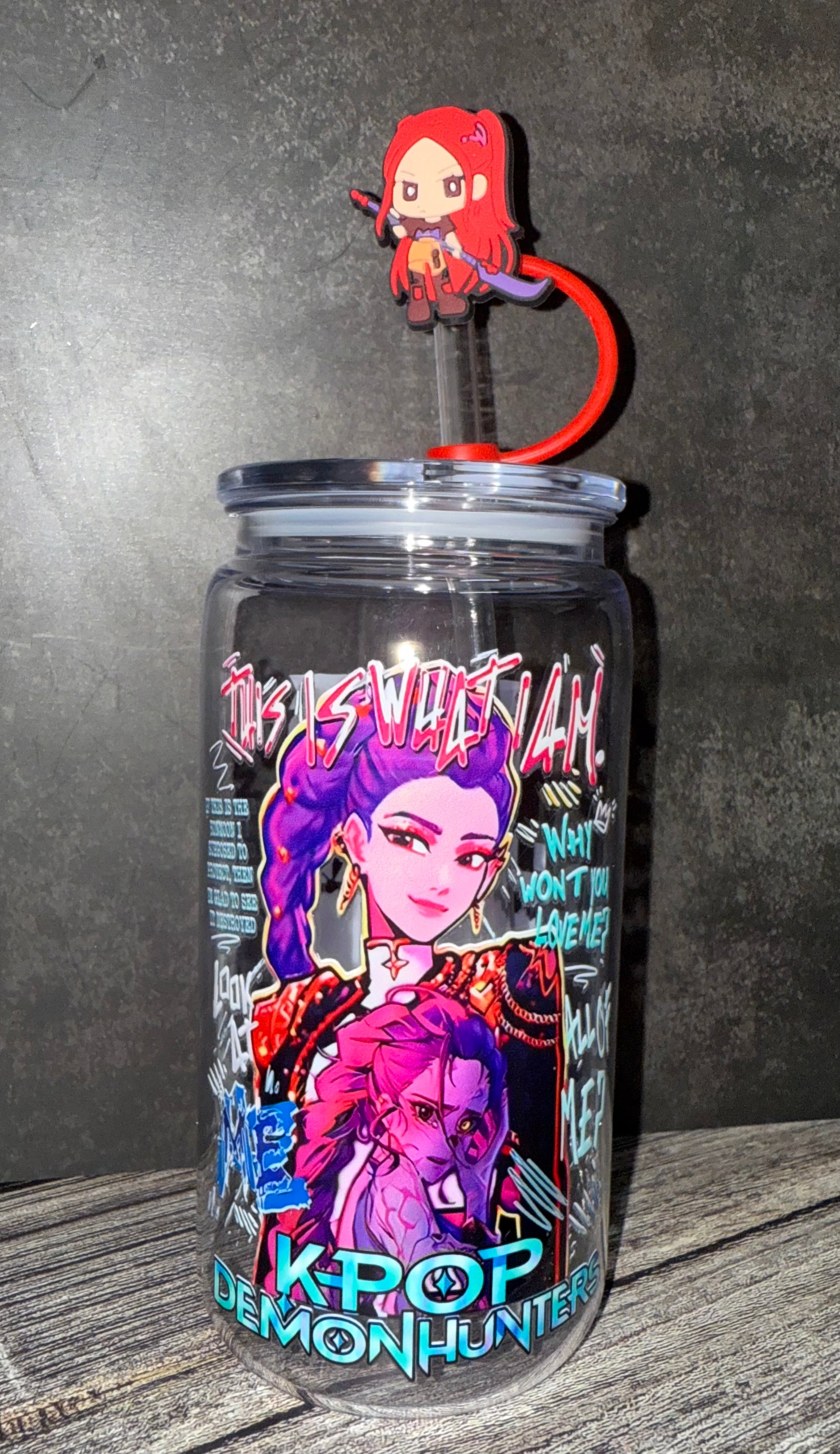 New Custom 16oz Acrylic Pop Star Cartoon Cups with matching acrylic Lid and Straw. Rumi, Zoey, Mira, Saja Boys and more. Bonus Cup Find!! Matching Straw Cover Included! These sell fast.