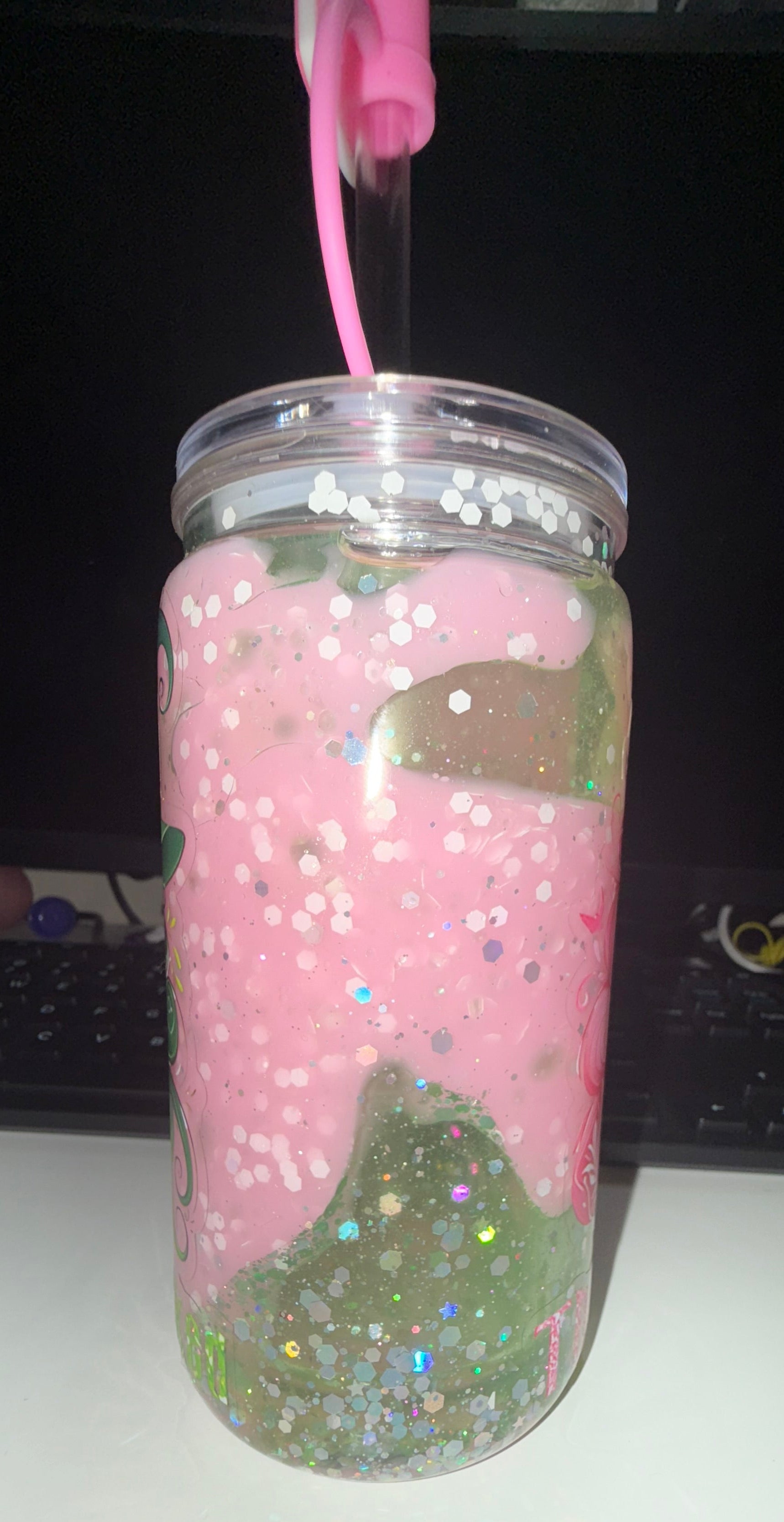 New Custom 16oz Acrylic Wicked Pink and Green Lava Cup. Comes with Straw and straw cleaning pipe. Bonus Cup Find!! Matching Straw Cover Included. Cup is for Cold Drinks, Refrigerator Safe, Lightweight, Reusable, Easy to Clean. NOT dishwasher safe. Made of food grade acrylic plastic material. BPA-free. Product Dimensions 3"W x 2"H